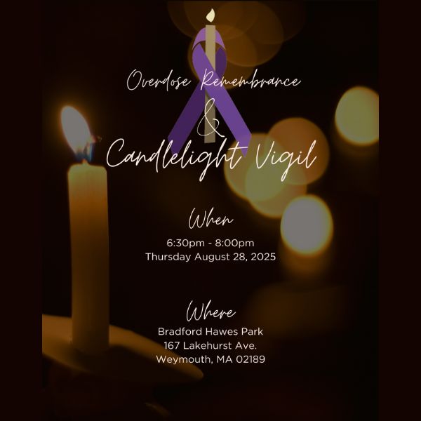 Weymouth Overdose Remembrance and Candlelight Vigil + Add to Google Calendar + iCal / Outlook export Date Aug 28 2025 Expired! Time 9:30 am - 12:00 pm Location Bradford Hawes Park 167 Lakehurst Ave. Share this event See All Job Postings Visit the News Room Recent News Community Health Specialist – Quincy December 1, 2025 Please Consider an End-of-Year Gift November 24, 2025 Care That Goes Beyond the Exam Room November 24, 2025 Search for: