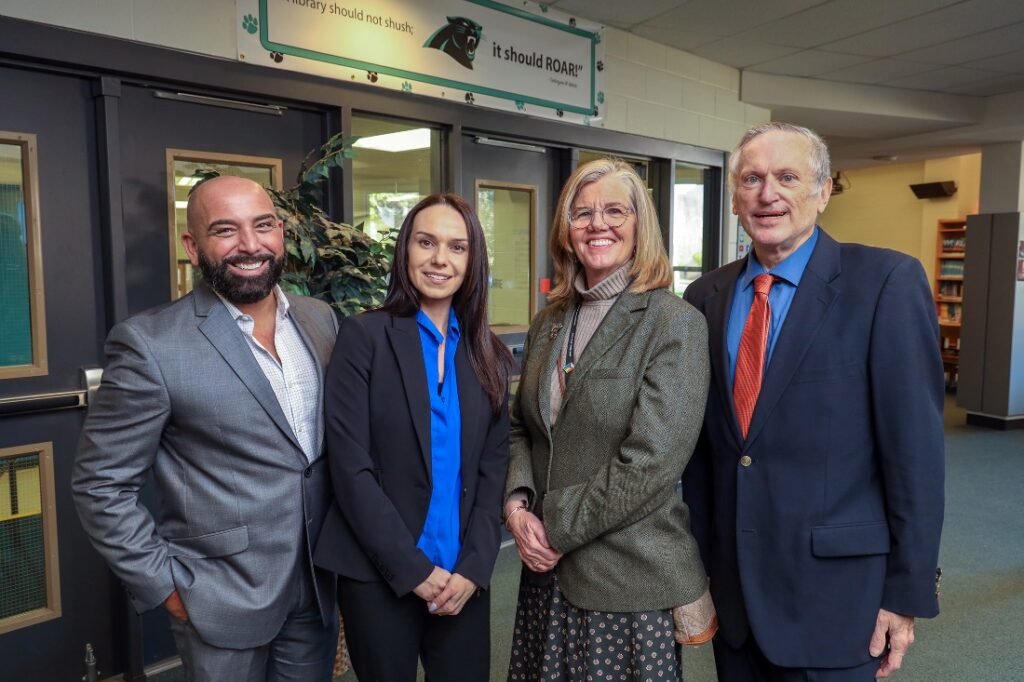 The speaking program, which began inside Taunton High School, was facilitated by Manet’s CEO Cynthia Sierra, and included remarks from TPS Superintendent John Cabral, Taunton High School Principal Scott Holcomb, John F. Parker Middle School Principal Michael Byron, School Committee Chair Dr. Gregory DeMelo, Manet Board President Grace Murphy-McAuliffe, Mayor Shaunna O’Connell, Senator Marc Pacheco, Representative Carol Doherty and a special greeting from Jeffrey Beard, JD, Regional Administrator at the U.S. Department of Health and Human Services, Health Resources and Services Administration’s (HRSA) Office of Intergovernmental and External Affairs (IEA) Boston Regional Office. Also in attendance were representatives from Congressman Jake Auchincloss’ office and the MA Department of Public Health’s School-Based Health Center Program, members of the Manet Board of Directors, staff members from Manet Community Health and Taunton Public schools. The ribbon cutting took place following the program at the entry of the new clinic and then attendees were invited to walk though the clinic, which will be ready to welcome patients very soon, pending final inspections and licensing.